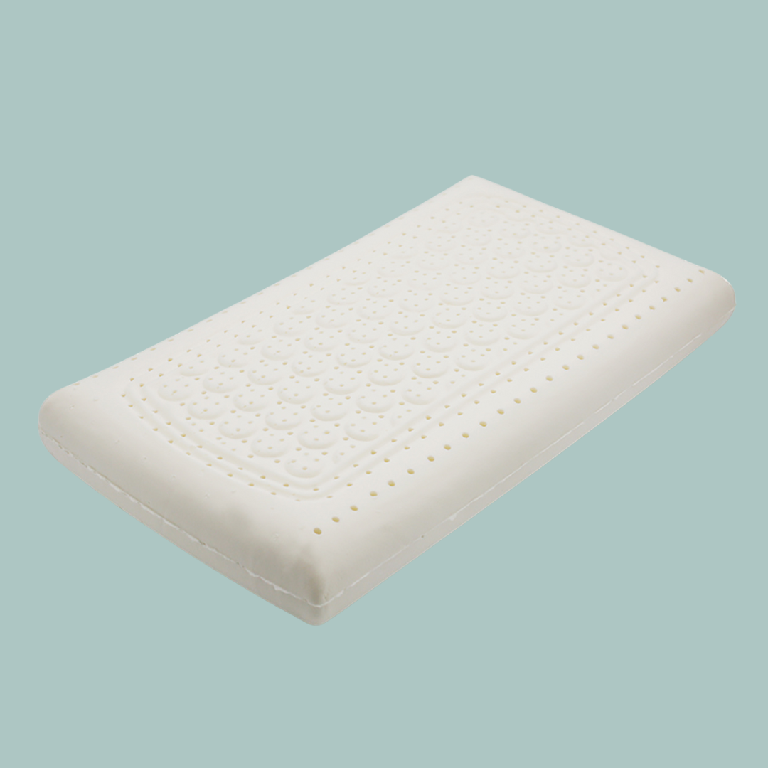 Slim, soft latex profile designed to reduce neck strain for stomach sleepers