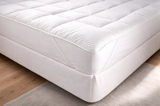Four reinforced elastic anchor bands hold the mattress pad securely in place — no deep pocket skirt required. Ideal for layered bedding systems.